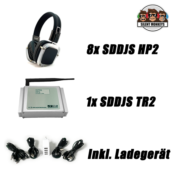 SDDJS 8HP2 Komplettset mit 8x HP2 Silent Disco Kopfhörer