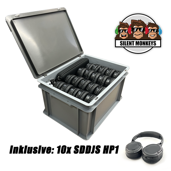 SDDJS CR101 Komplett-Set mit 10x HP1 Silent Disco Kopfhörer in einer Transport-/Lagerbox