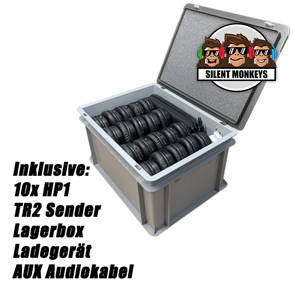 Komplettset mit allem Notwendigen für eine Silent Disco bis zu 10 Personen.