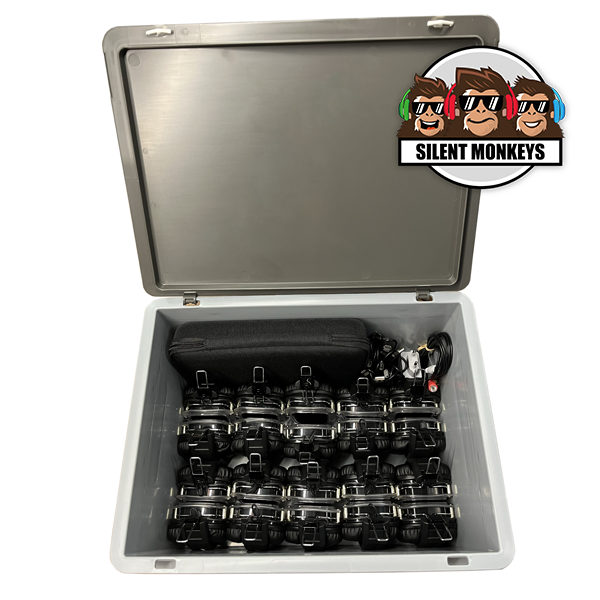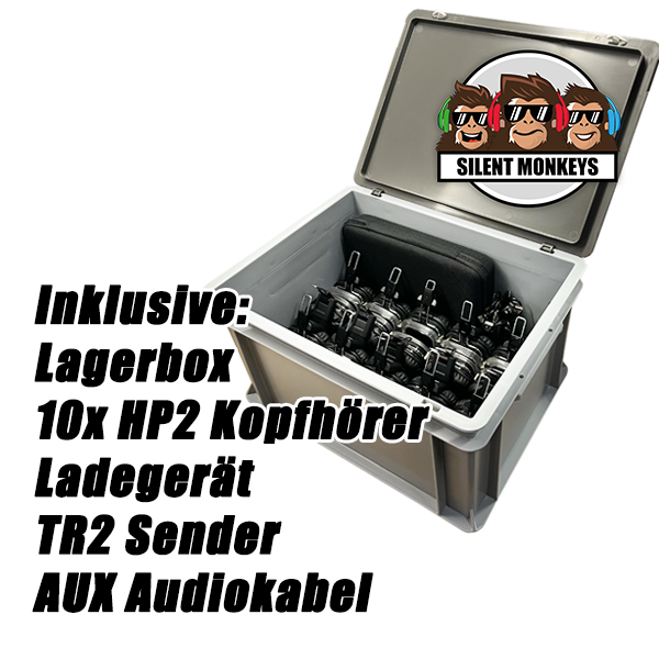 - Komplettes Set für eine Silent Disco für bis zu 10 Personen
