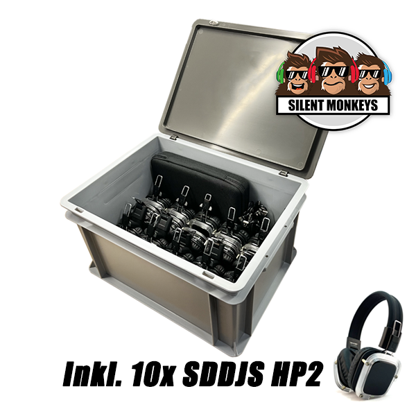 SDDJS CR102 Komplett-Set mit 10x HP2 Silent Disco Kopfhörer in einer Transport-/Lagerbox